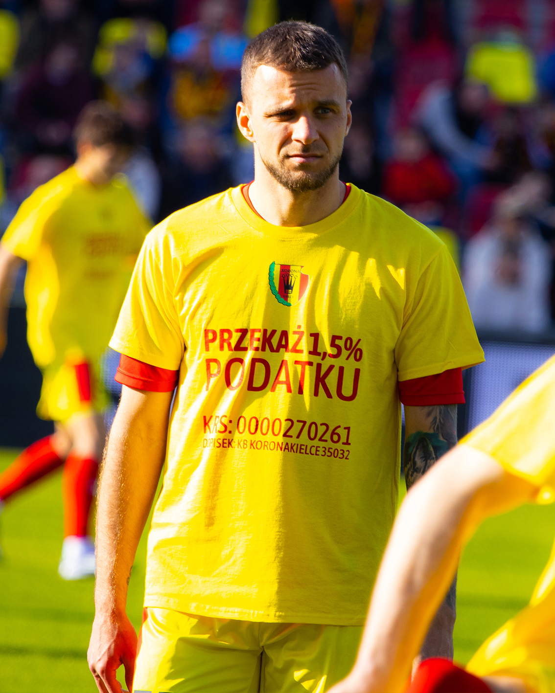 Podczas rozgrzewki przed ostatnim domowym meczem PKO Bank Polski Ekstraklasa nasi zawodnicy wybiegli na murawę w wyjątkowych koszulkach zachęcających do przekazania 1,5% podatku na Industrię Akademię Korona Kielce.